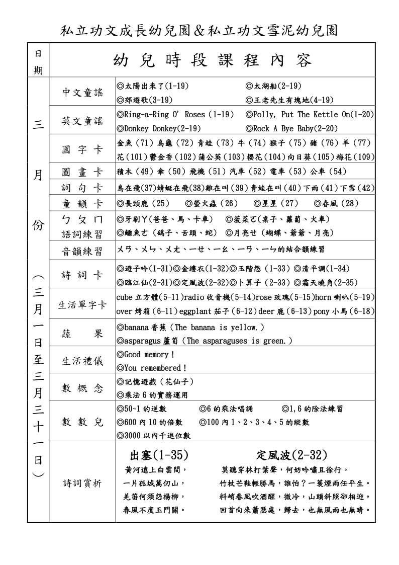 3月幼兒時段